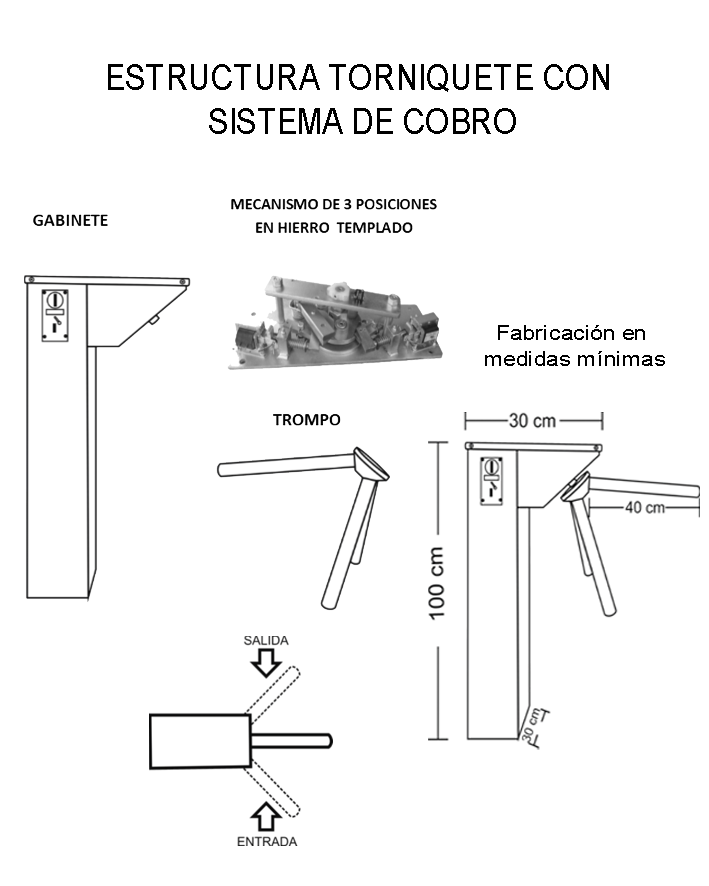 • El mecanismo del torniquete es de acero cimentado con una vida operativa puede alcanzar hasta 1 millón
