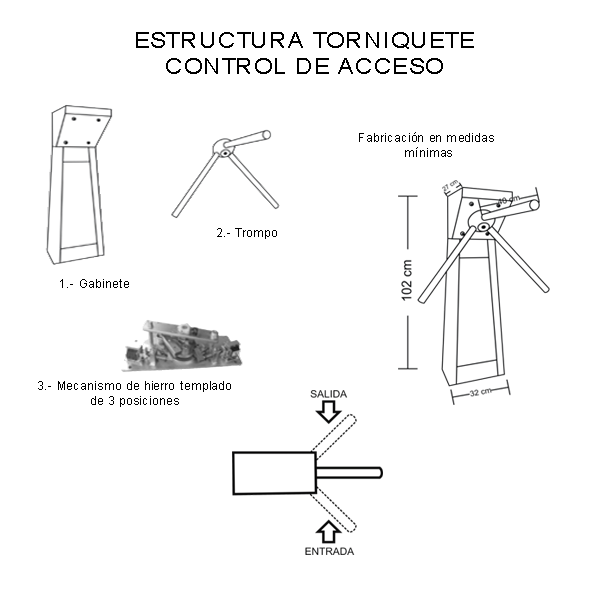 • El mecanismo del torniquete es de acero cimentado con una vida operativa puede alcanzar hasta 1 millón